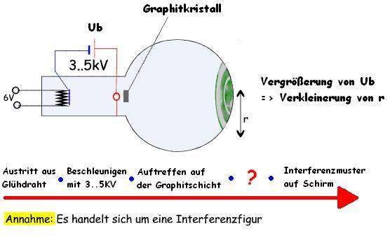 die Graphitfolie treffen und dort gebeugt werden, da die Molekularstruktur von