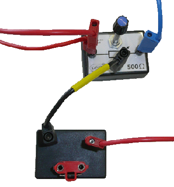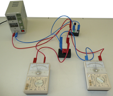 | Die gezeigten Materialien (Diode, Poti) bietet die Firma LePrax-Physik. Dazu gibt es vollständig ausgearbeitete Experimentieraufträge. | |
