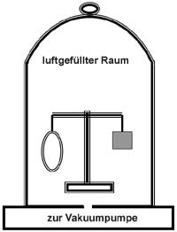 Luftteilchen. Der Auftrieb, den beide Körper erfahren, sinkt und