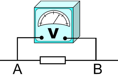 Die Spannung wird zwischen zwei Punkten (z.B. vor- und hinter einer