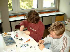 Ein guter Kontakt zwischen Spule und Auflage ist unbedingt erforderlich. Sollte sich die Spule nicht wie gewünscht drehen, kratzt mit dem Messer noch einmal die Kontaktstellen ab. Ablagerungen auf dem blanken Kupfer verringern die Kontaktfähigkeit.