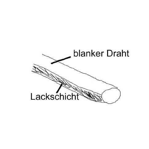 Jetzt müsst ihr beide Spulenenden  halbseitig  von der Lackschicht befreien. Wie ihr sicher schon mitbekommen habt, ist der Kupferlackdraht (daher der Name) mit einer isolierenden Lackschicht überzogen.  (Warum eigentlich?) Dazu nehmt ihr das Teppich- oder Tapetenmesser,  legt jeweils ein Spulenende auf eine glatte Unterlage und kratzt mit dem Messer die Lackschicht halbseitig  ab. Der Spulenkörper sollte dabei senkrecht stehen. Das andere Ende wird in gleicher Weise bearbeitet.