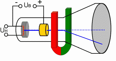 Auf die Elektronen wirkt die LORENTZkraft. Der Strahl wird wie