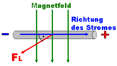 Strom und der LORENTZkraft ist ein rechter Winkel (räumlich). |