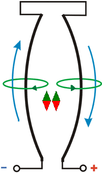 Richtung des Stromes (Elektronenbewegung vom Minus- zum Pluspol)