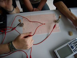 Fotos zeigen die Aufnahme von Äquipotentiallinien in drei verschiedenen