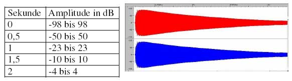 dass die Amplitude innerhalb der ersten halben Sekunde sehr stark und in der