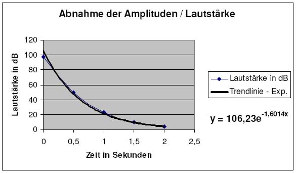 exponentiellen Abnahme ist nach diesem Versuch zu bestätigen. Die Amplituden