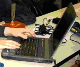 Gummihammer gegen die Stimmgabel geschlagen. |