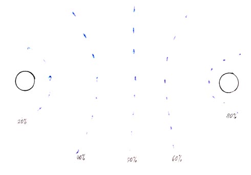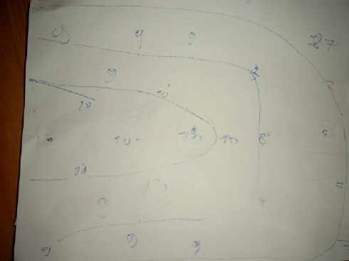 Nachdem wir ca. 20 Messungen auf dem Papier gegenzeichnet haben, wurden gleichnamige Werte durch eine Linie miteinander verbunden.