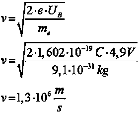 einer Geschwindigkeit von v > 1,3 *106 m/s (vgl. Grafik rechts),