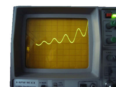 Signal - hier die Beschleunigungsspannung steigt langsam, quasilinear an und