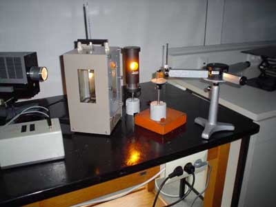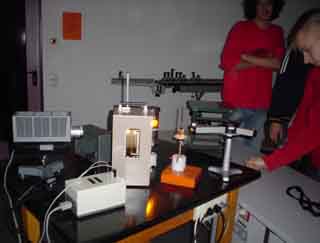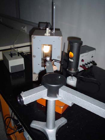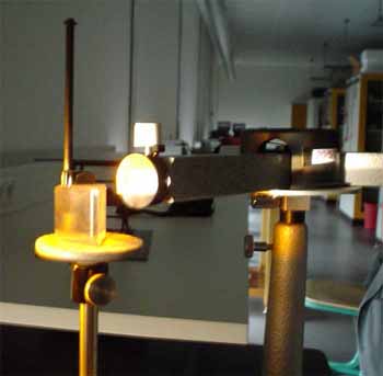 eine Na-Dampf-Lampe. Über ein Prisma wird das einfallende Licht so
