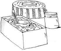 etwa gleich sind! Stelle das erste Glas in den Schuhkarton und stopfe den