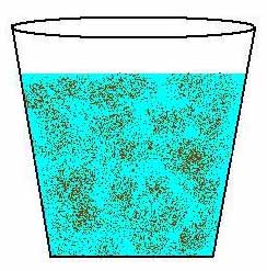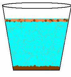 Fülle einen Teelöffel Muttererde in Glas mit Wasser. Rühre das Wasser ca. 10 Sekunden um und lass das Glas dann stehen. Beobachte was passiert: