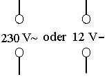mit Spannungsangabe und Angabe der Art des Stromes (a-Wechselstrom, b-Gleichstrom)