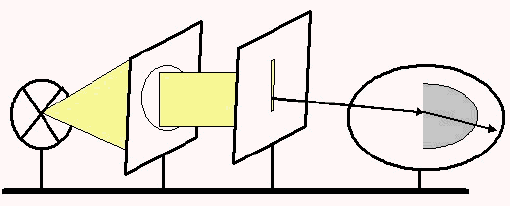 Der Trick - fällt der Lichtstrahl auf den Mittelpunkt des halbkreisförmigen Körpers, dann folgt er der geometrischen Linie des Radius.