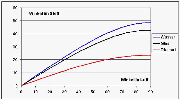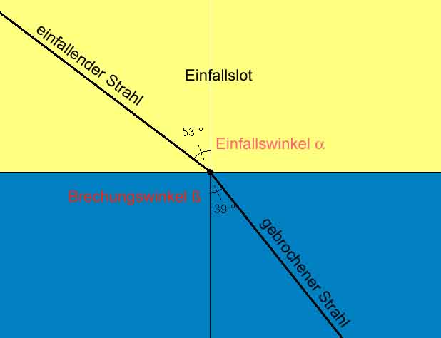An der Grenzschicht zweier lichtdurchlässiger Medien ändert das Licht seine Ausbreitungsrichtung.