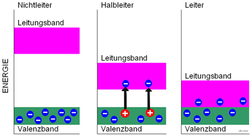Halbleitern und Leitern. Je größer der Abstand zwischen Valenzband