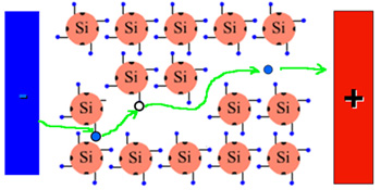 Löcher" in Richtung des Pluspols der Spannungsquelle bewegen. |