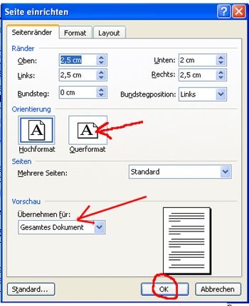 oder Querformat entscheiden. Weiter untern (Pfeil) kannst du