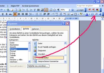 EXTRAS auf ANPASSEN und wählt dort die Registrierkarte BEFEHLE. In
