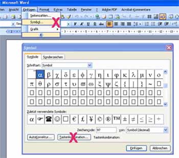 ihr unter dem Menüpunkt EINFÜGEN - SYMBOLE. Dort könnt ihr die